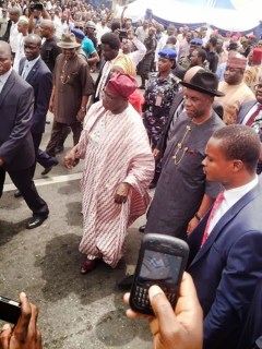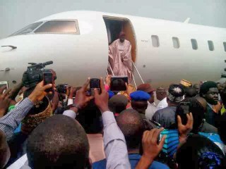 The former leader was received at the Port Harcourt Airport by the state governor, Rotimi Ameachi, top government officials and the people of rivers state