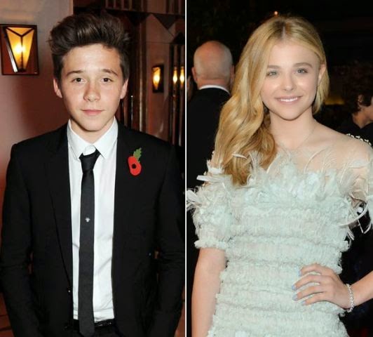 David Beckham’s first son, 15 year old Brooklyn Beckham has finally gotten his first girlfriend…and If you think he would go for the girl next door for his first experience at love, think again. He went for a Hollywood starlet. Brooklyn is reportedly dating model/actress Chloe Moretz, who at 17 is two years older than him. The pair have been dating for three months after being introduced by mutual friends. (Couple pictured together in June).