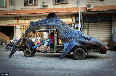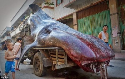 Whale sharks are protected in China due to dwindling in number and black market salesmen are punished with hefty fines. But when fisherman Cai Chengzhu, 48, spotted this 16-foot-long, two-tonne beast, he could not resist having a go.