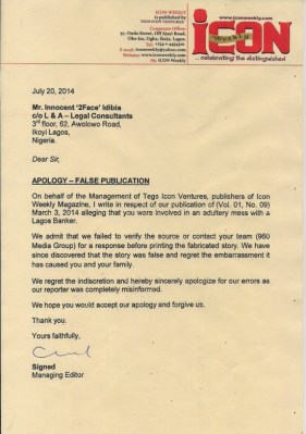 Weeks after 2face Idibia slammed a N100million lawsuit against soft-sell magazine, Icon Weekly, after they published a story claiming he had cheated on his wife and impregnated a banker, (read here) the magazine has apologized to the singer and have withdrawn their story, accepting that it was a false publication.