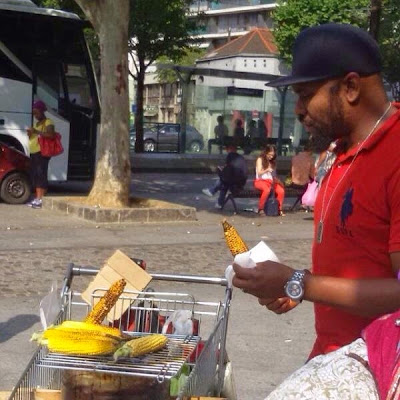 Recently, the OAP was in Paris and could not help his hunger as he was in need of Nigerian food and fortunately for him, he saw roasted corns around.