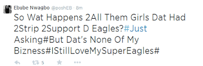 Cossy, Omo London and Maheeda all stripped to show support for the super eagles..Sadly, it was not enough as we crashed out of the semi-finals after a 2-0 win to France..So Ebube decided to throw shade at them..Lol