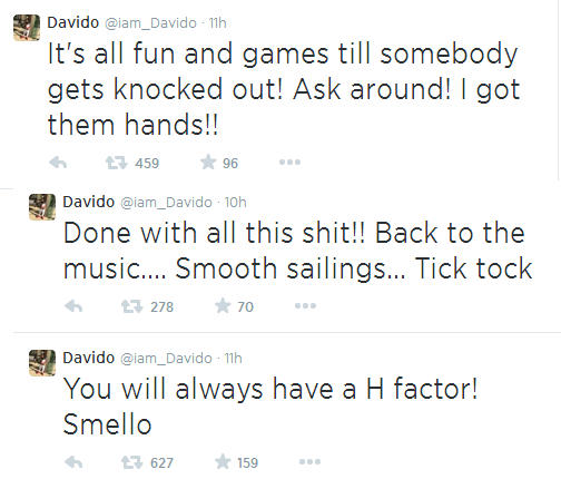 Davido replied Wizkid last night threathening to use his hands on Wizkid..Wizkid replied him above….You know Wiz is from the streets hence the laugh
