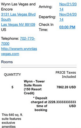 Balling things. Mr handsome and wealthy Davido dropped almost $8,000 (about N1.3m) for a suite at the luxurious Wynn Las Vegas and Encore hotel for his birthday weekend next month. He paid that money for only three nights, November 21st to 24th. These things usually have to be paid in advance. He shared his booking confirmation on his instagram page. #living!