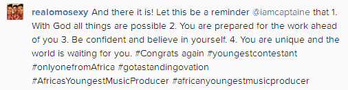 Actress Omotola Jalade-Ekeinde took to her instagram page to celebrate her 16yr old music producer son, CaptainE who came third place at the international music conference producer showcase competition which held in Atlanta, Georgia, last month. He was the youngest and the only African in the competition. Big congrats to him..