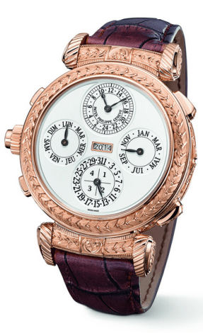 The watch according wsj.com, was developed over eight years, has 20 complications and two dials; and the case has 214 parts. Only seven will be made. For billionaires of course!