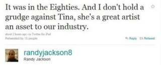 Randy Jackson Claims Tina Turner Shot Him Posted by 9jasouth on 10/29/2014 Posted in: GIST. Leave a comment One of Michael Jackson’s brothers Randy , claims singer Tina Turner shot him. Read his tweets after the jump Share this:bingShare on TumblrTweet Email a link to a friend (Opens in new window) Email Like Loading... Related Posts navigation ← Dr Mike Adenuga Honoured With Major Donor Award By Unilag jeeeez : Lady with Uti Nwachukwu exposese her lady lumps →