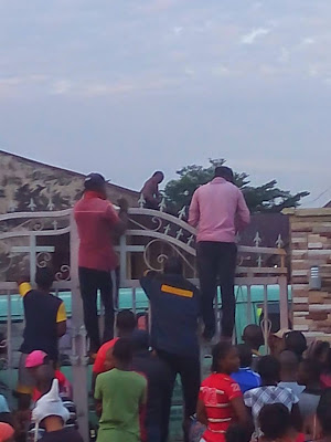 when we got closer, we heard people saying a witch has been caught stranded on the roof of a church (ALL CHRISTIAN FELLOWSHIP) just before Kubwa village market at about 6:30am, i couldnt access the crowd, but i got a pix, later at about 6;50am a police van came to the scene, brought the stark naked witch down from the roof of the church and dragged her to the kubwa phase 4 police station, that was when i saw her live and clearly, but was too shock struck to snap a closer, clearer pix. manage the 1st pix i got.