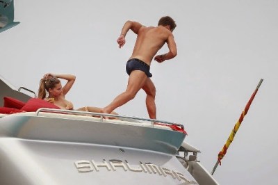 While relaxing on a yacht, Super Mario seemed so excited to be with his hot model girlfriend, that his junk refused to relax/stay down…lol. His giant bulge was on display for several minutes..and what a sight! Hehe. Best part is the two are still together. Continue to see Mario in all his glory….