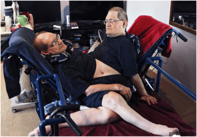 They have four arms and four legs and separate hearts and stomachs but share a lower digestive tract, a groin, a rectum and penis, over which Donnie has control.The twins were born healthy in Dayton, Ohio in October 1951 but stayed in the hospital for two years as doctors tried to figure out how to separate them. But when they said they could not guarantee both babies would survive an operation to part them, the parents said they would stay as they were.The men agree that was the best decision.