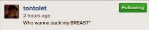 gosh!!! Tonto Dikeh Is Looking For Someone To Come Suck Her br***t Posted by 9jasouth on 01/13/2015 Posted in: ENTERTAINMENT, PHOTO. Leave a comment I just wanna know if Tonto Dikeh is ok or high on something when she wrote this, meanwhile who has the answer? Share this:bingShare on TumblrTweet Email a link to a friend (Opens in new window) Email Like Loading... Related Posts navigation ← Kelly Hansome – Abatagom (Freestyle) The actress eniola badmus Sexy Look →