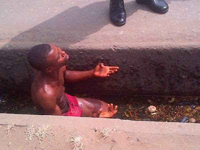 They chased and caught him, then they removed his clothes and made him swim in that gutter pool. With enough koboko and swimming, the money appeared back.