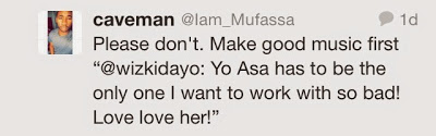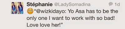 So yesterday, Wizkid tweeted that he wants to work with Asa so bad, trust Nigerians who sized the opportunity to trash his music, stating that their music is not on the same level. Ironically Asa tweeted “Satan Be Gone” which some claim she was directing at Wizkid. See some of their tweets inside…