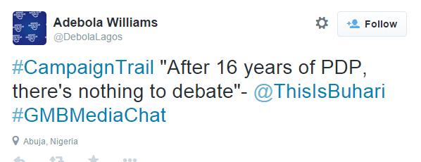 The Presidential candidate of All Progressives Congress, Muhammadu has said he is not ready to participate in the presidential debate with President Goodluck Jonathan. Continue Reading